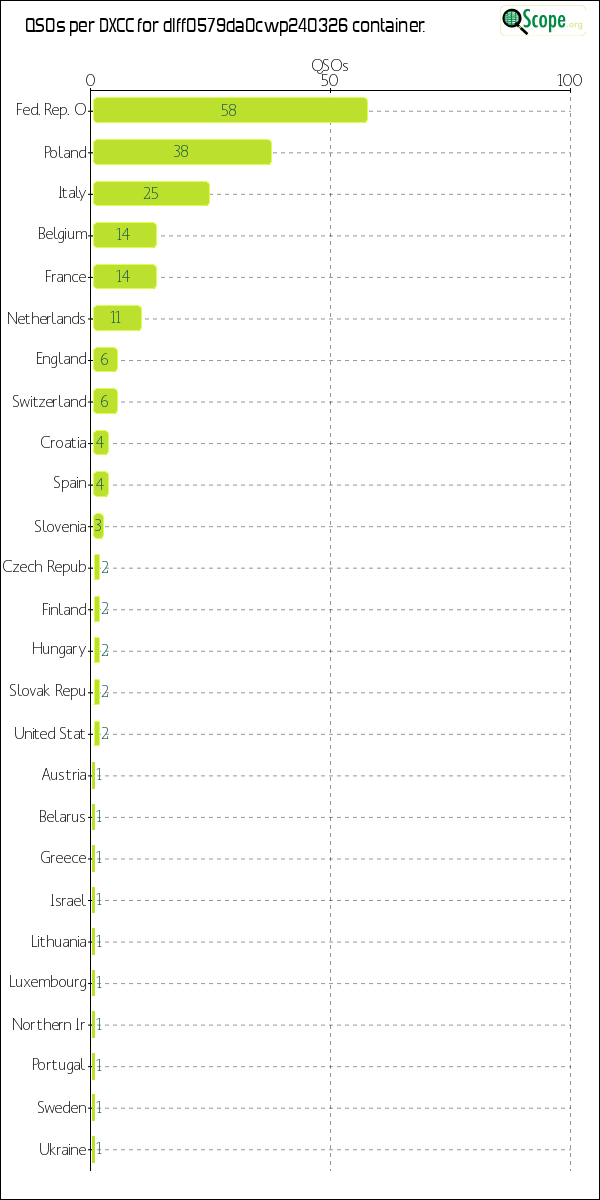 | Distinct DXCC (if specified in the ADIF log) | 26 |